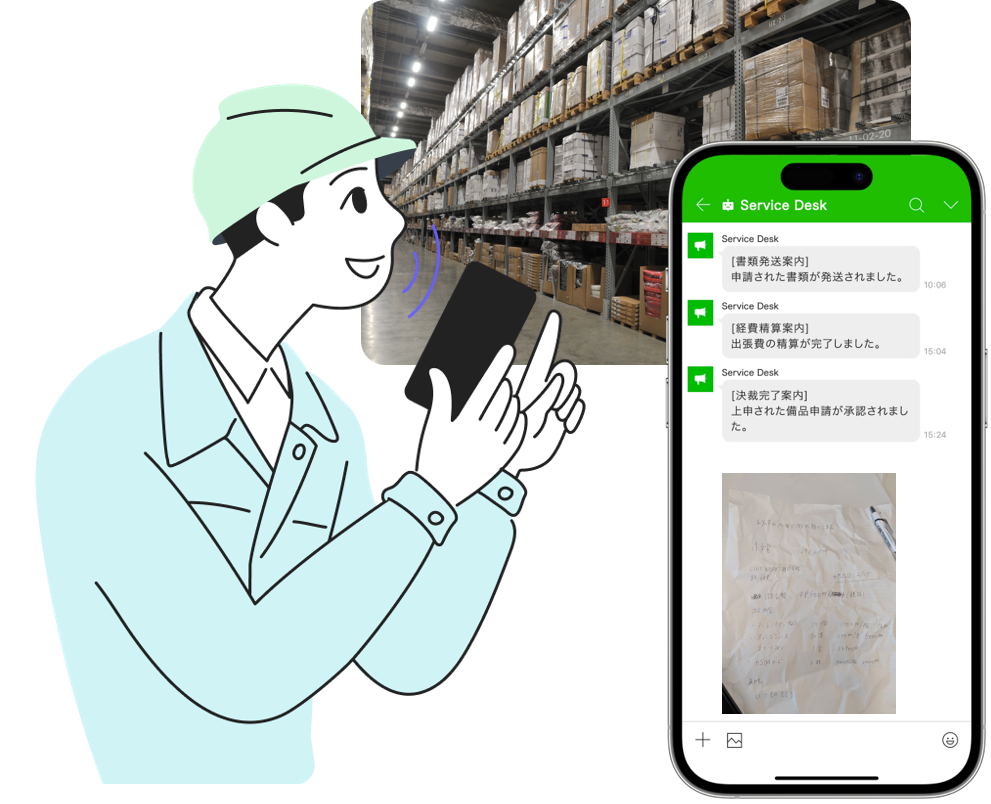 ただし、LINE WORKSと併用いただくことでモバイルからの帳票アップロード機能やDriveとの連携機能等がご利用可能になり、LINE WORKS PaperOn単体でご利用いただく場合より、一層業務を効率化することができます。